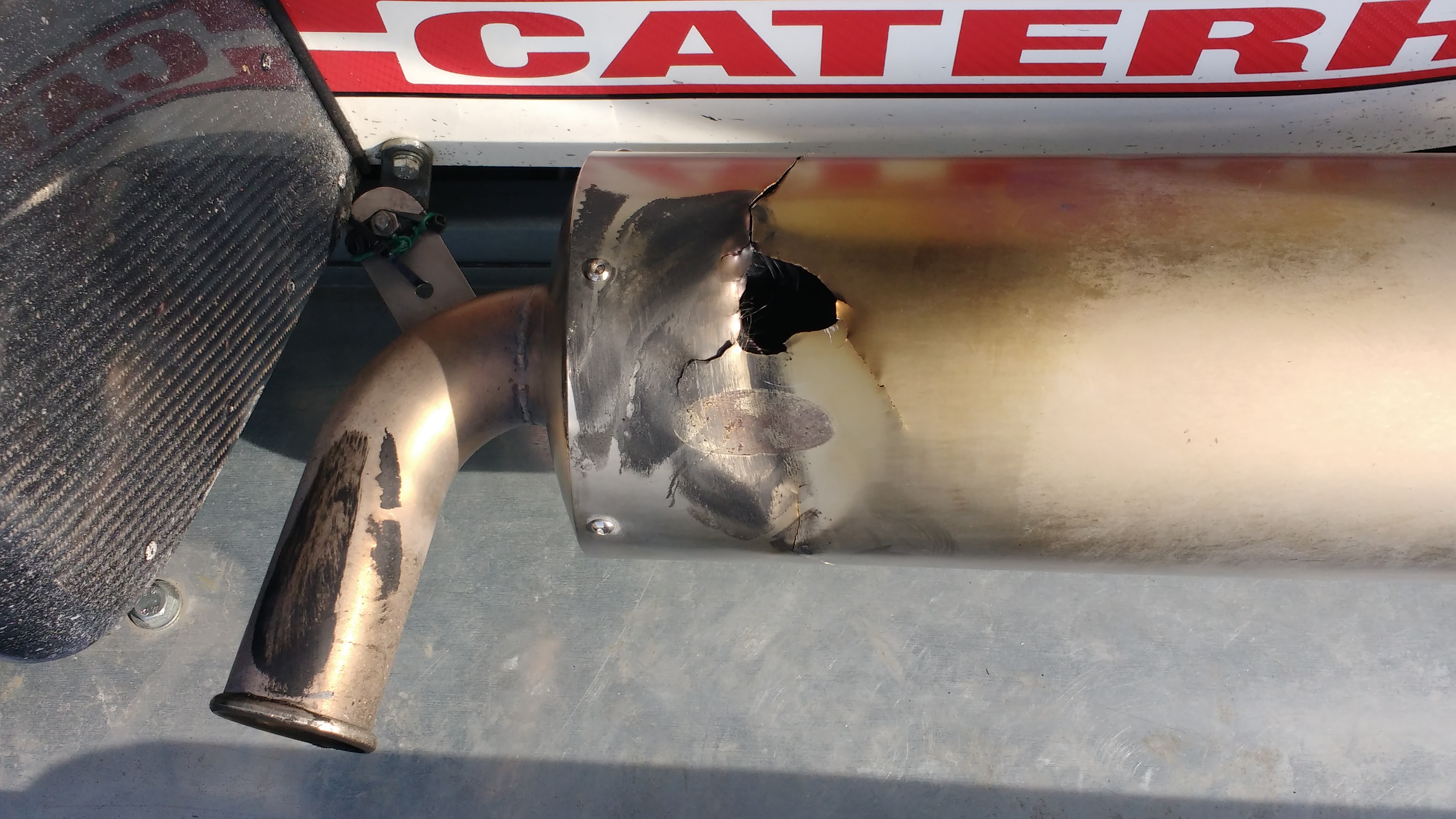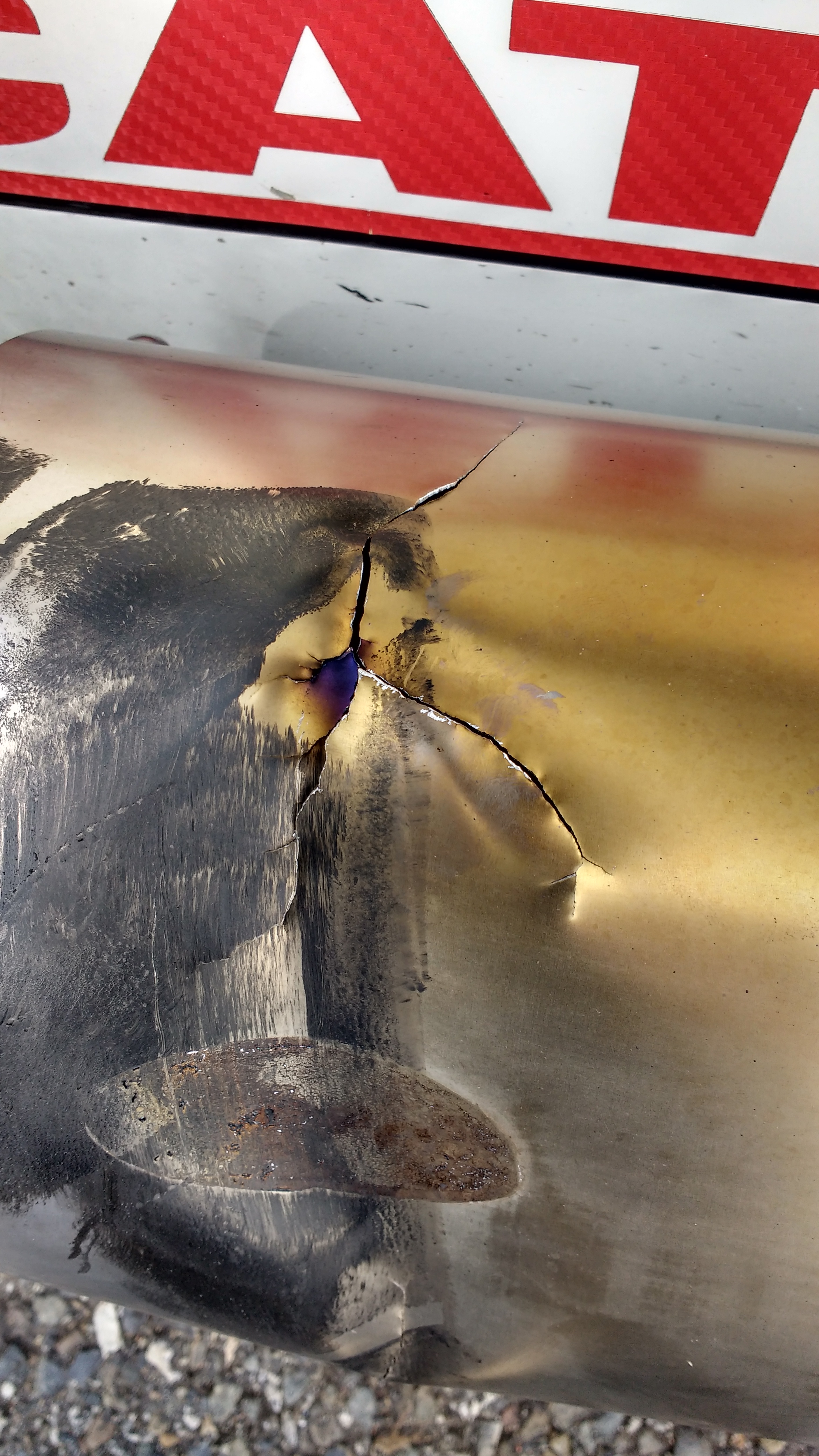 Qualité Caterham garantie , mon silencieux est tombé par terre sur passage un peu agressif d'un passage de rail de portail...Donc choc, donc remis en place pour continuer à rouler, donc fissure.
