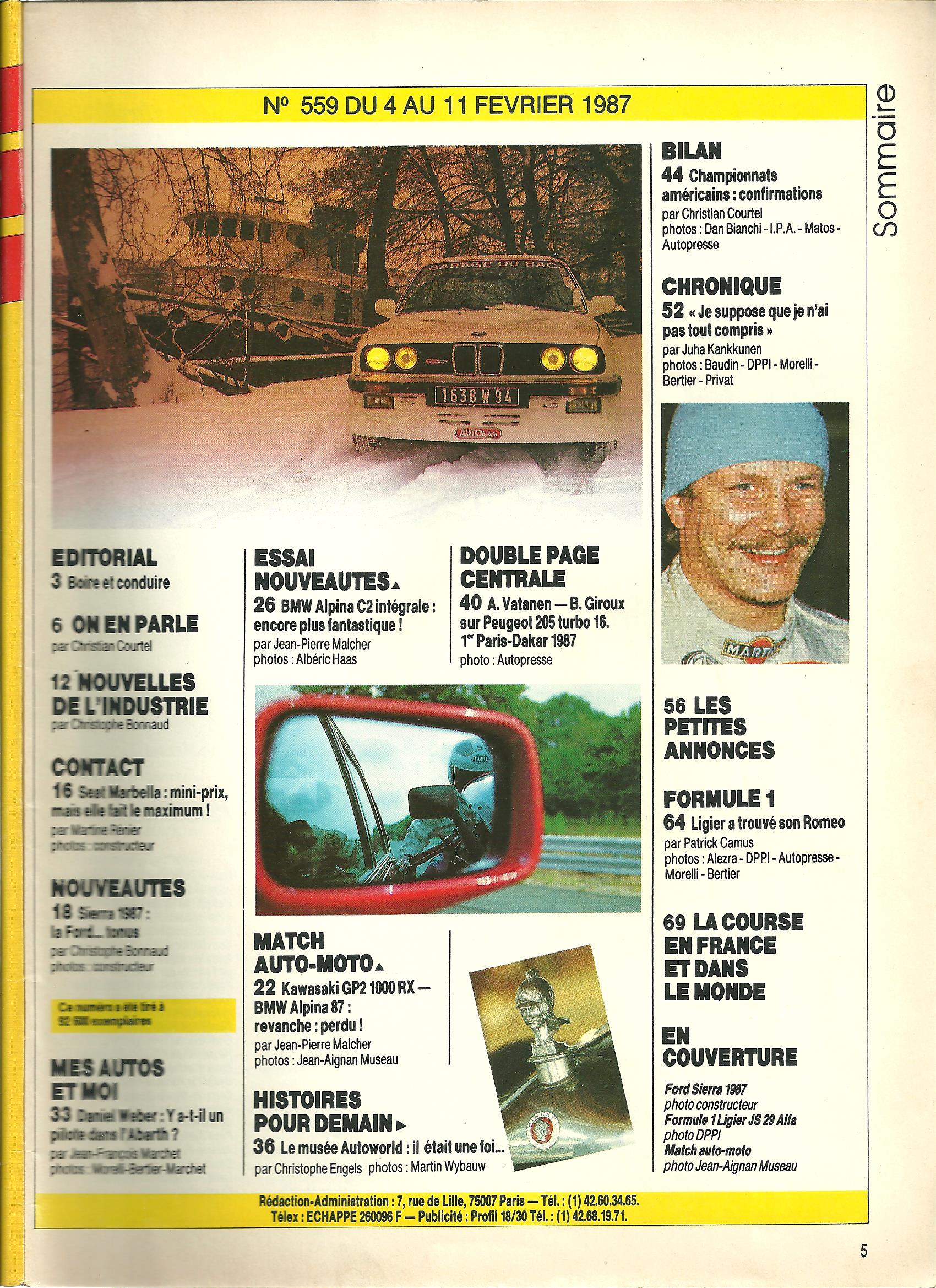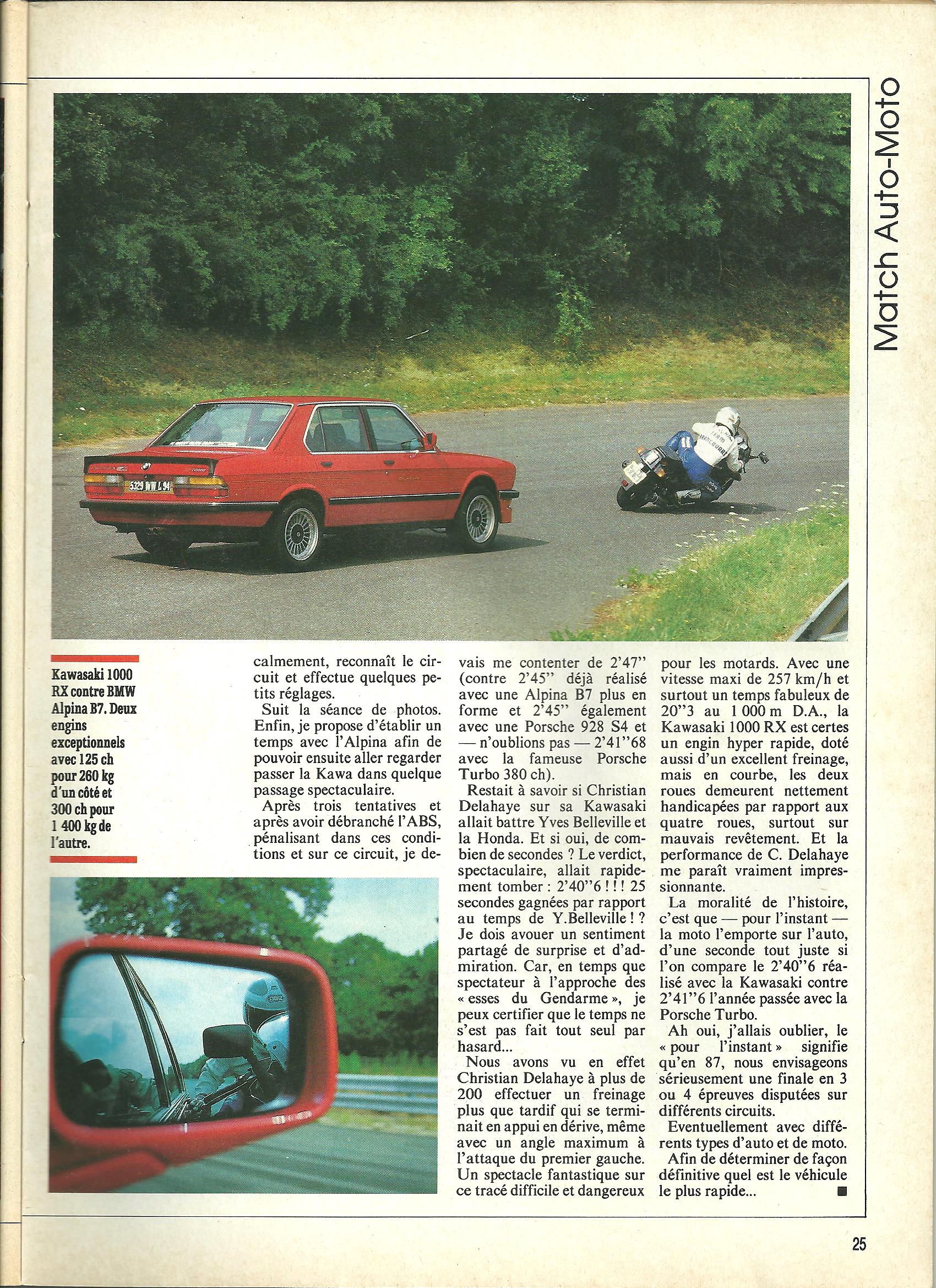 Dans mes archives du grenier je suis tombé sur un Auto Hebdo de Février 1987 avec un match auto moto très "Youngtimers" que je trouve sympa , donc je vous le partage