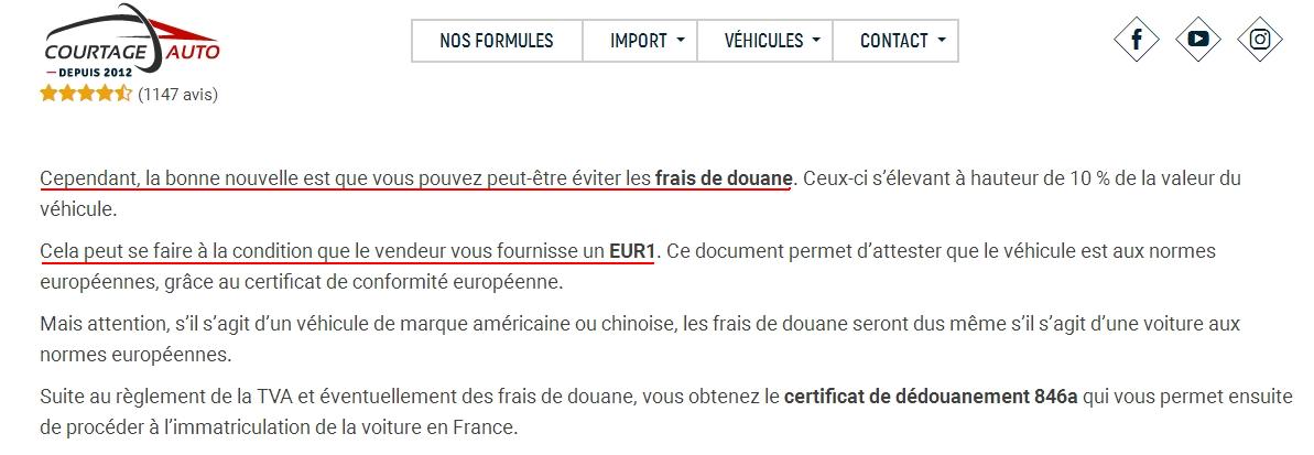 Cela implique que le véhicule a été importé en Suisse DONC la TVA en Europe a déjà été payée !