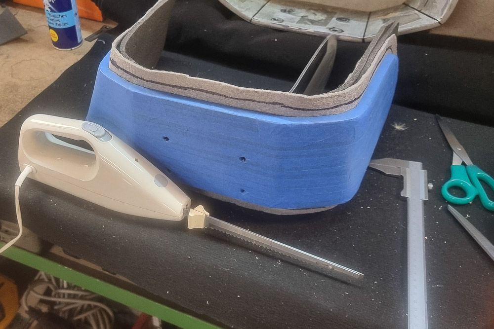 Une fois les mousses bien assemblées et collées, on peut attaquer la découpe.