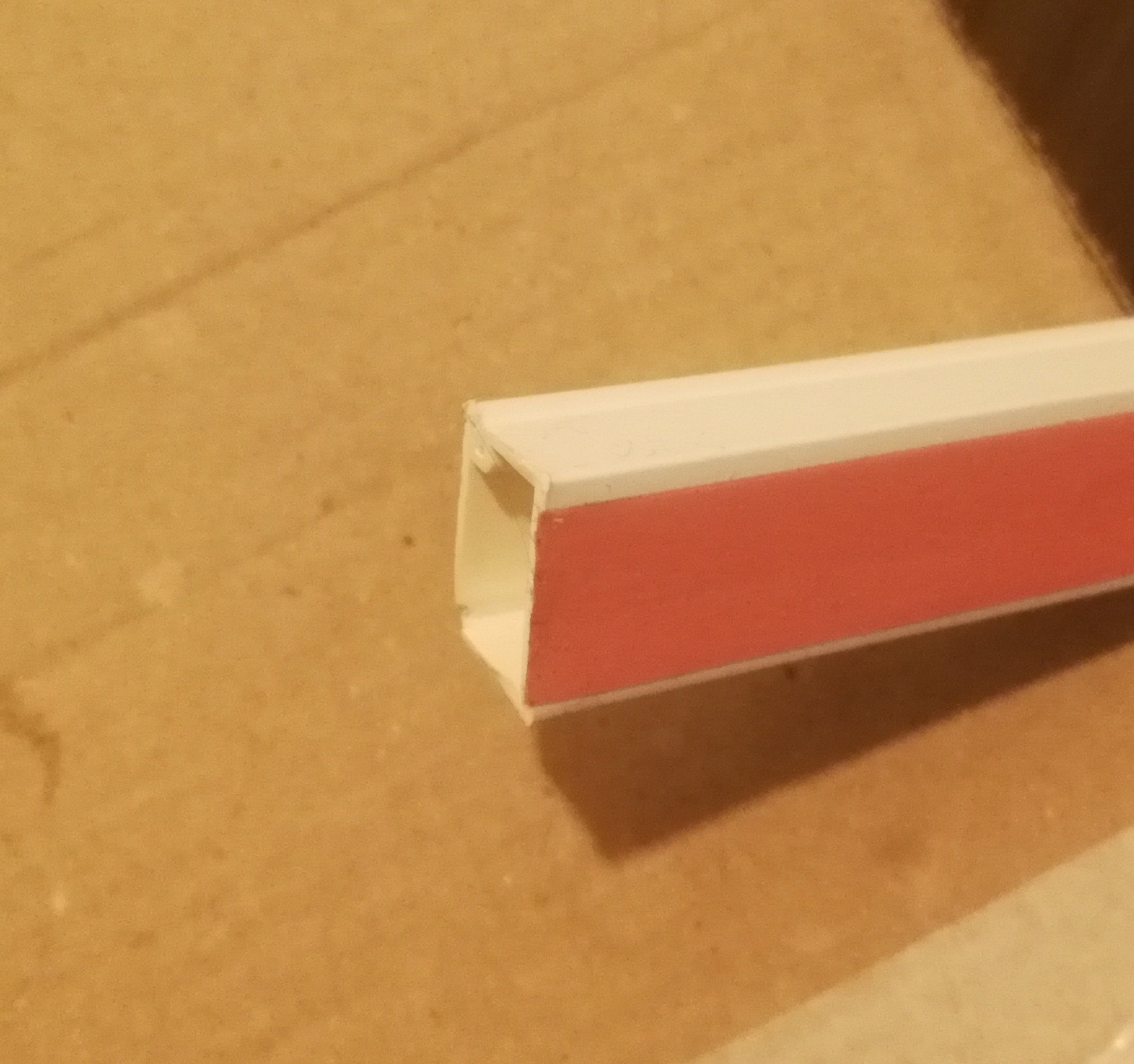 J’ai collé une goulotte en D du genre, après avoir coupé la partie « ronde » au cutter et la gorge (on ne garde que la partie plate avec l’adhésif).