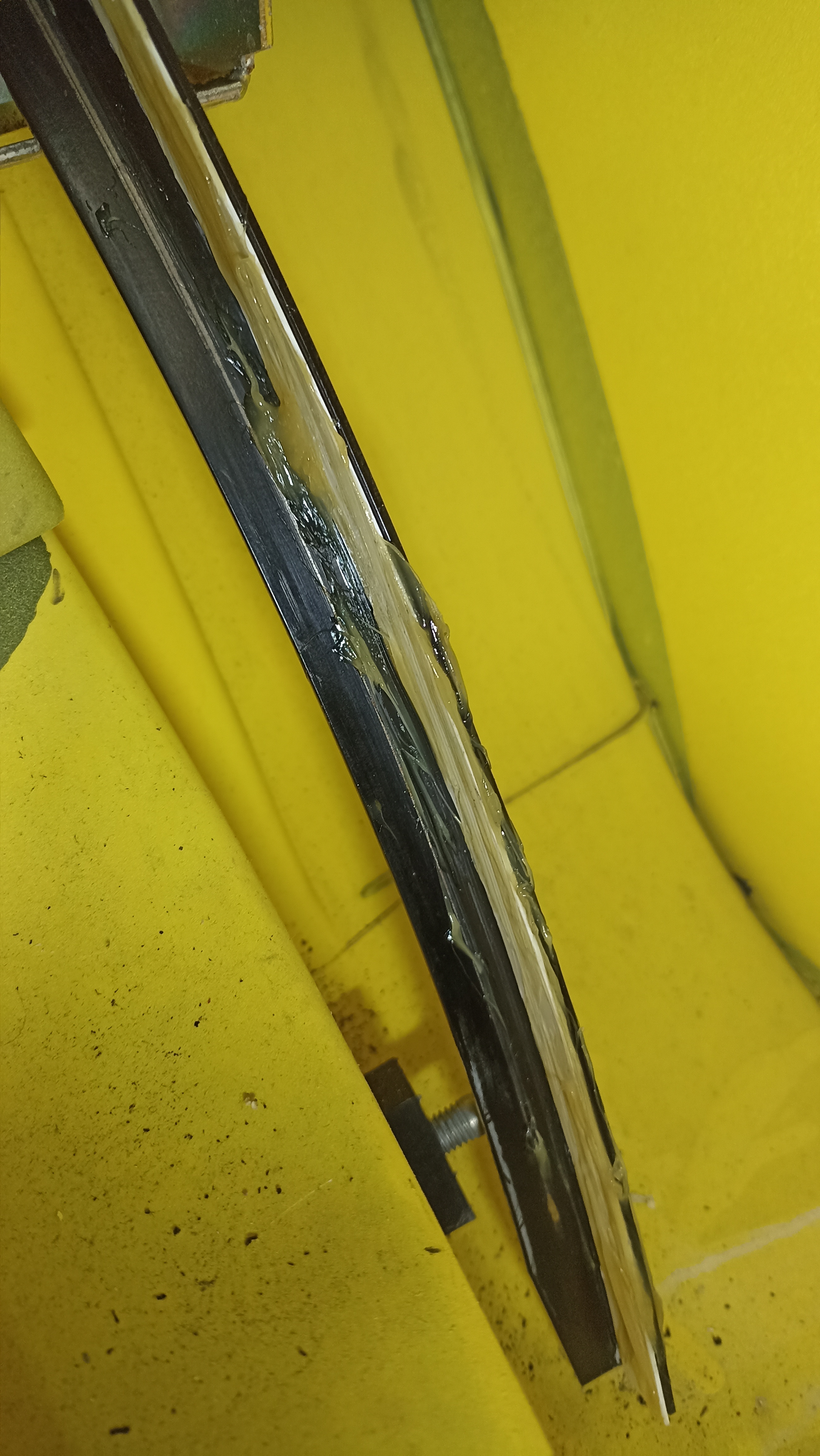 Sur le forum anglais, certains expliquaient avoir simplement poussé le morceau de goulotte graissé par dessus, sans rien démonter ni coller : la goulotte tient en place contre le rail avec les patins.