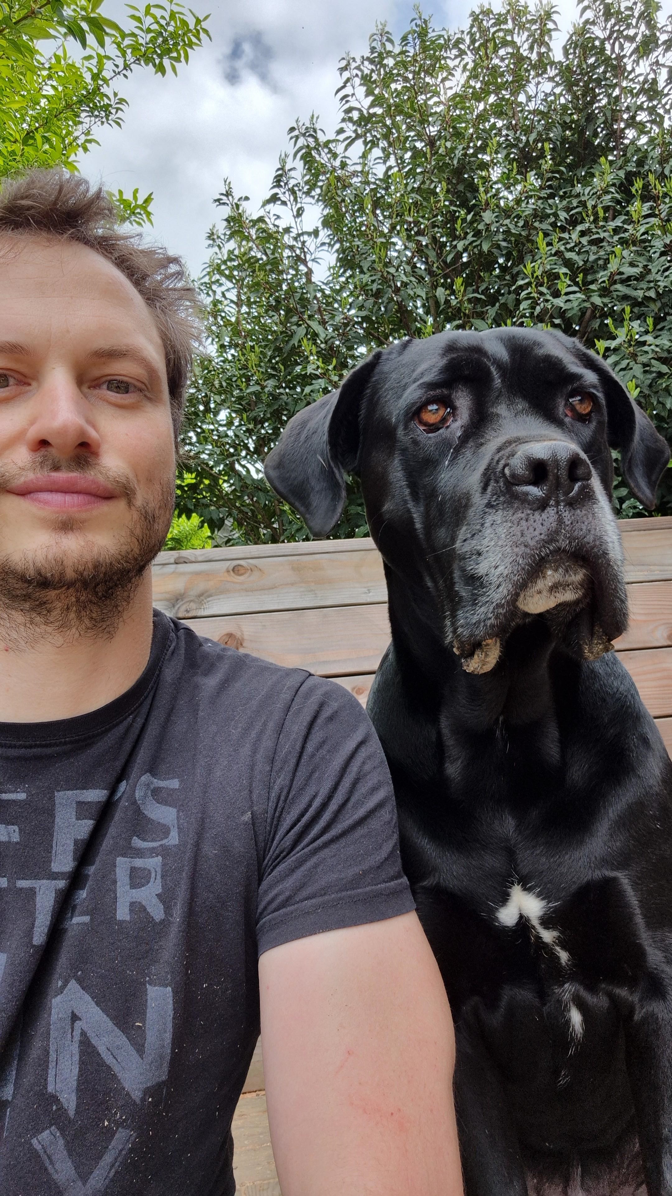 Appel de la voisine "Allô, Mme, oui on a vu votre chien beige chez nous, alors elle ça va, elle a une bonne tête, mais si la grosse noire vient avec elle on ne sera vraiment pas rassurées, pouvez-vous faire quelque chose svp?"