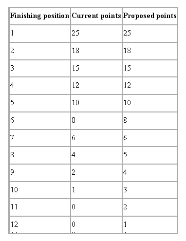Proposition de modification du barème de points favorisant les "petites" équipes. De prime abord,