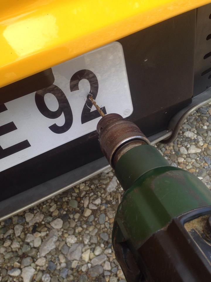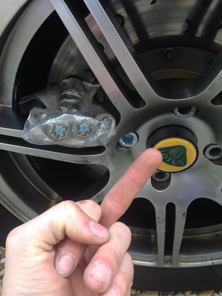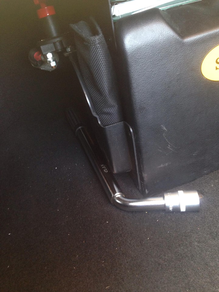Ah ca vient de la roue, elle est desserrée. Heureusement que Lotus a tout prévu et nous fourni une petite sacoche avec la clé de roue ! Je vais pouvoir repartir illico