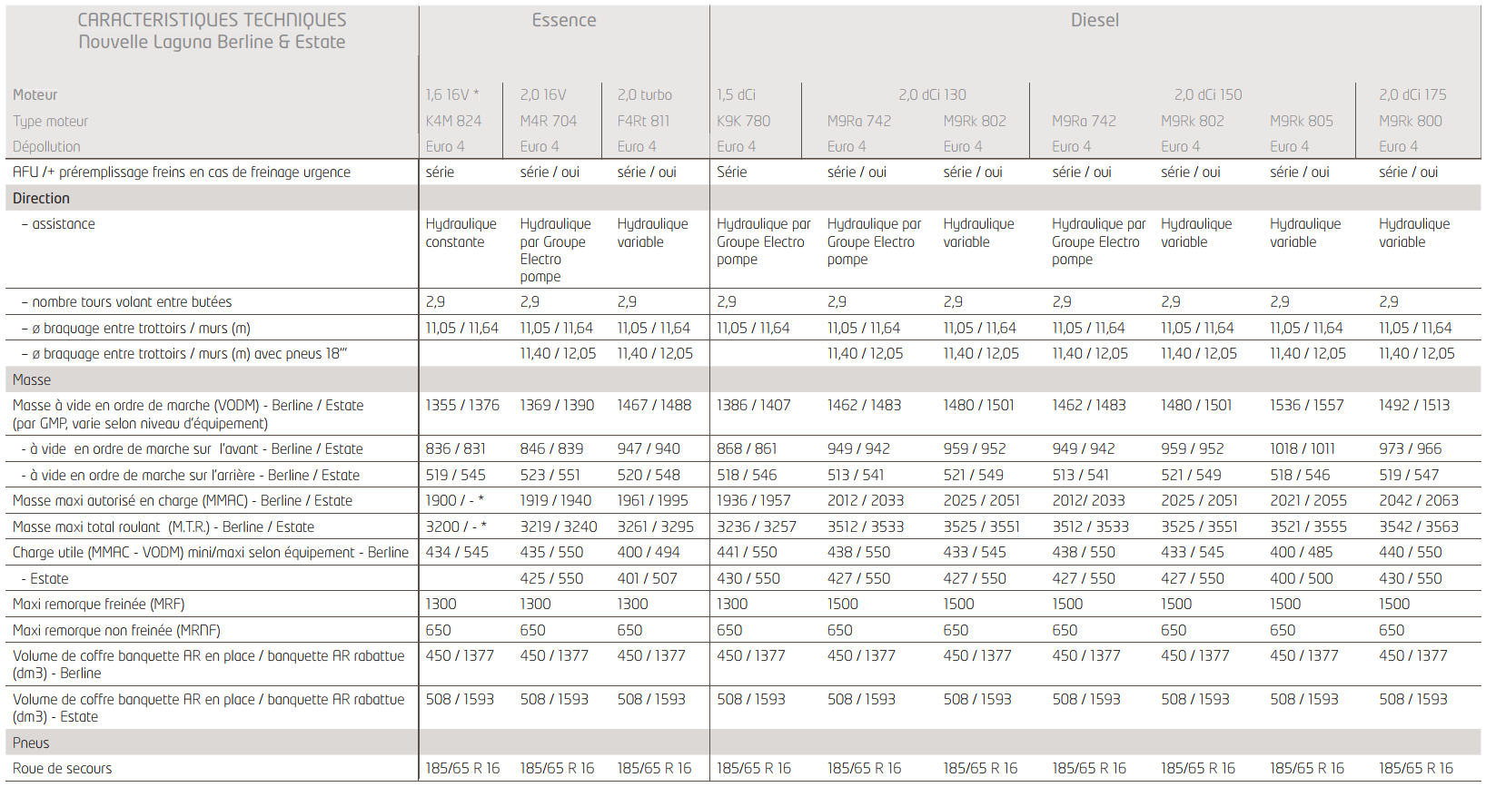 Je creuse la piste de la Laguna GT, en fonction des sites je trouve entre 1300 et 1500 kilos de poids tractable.