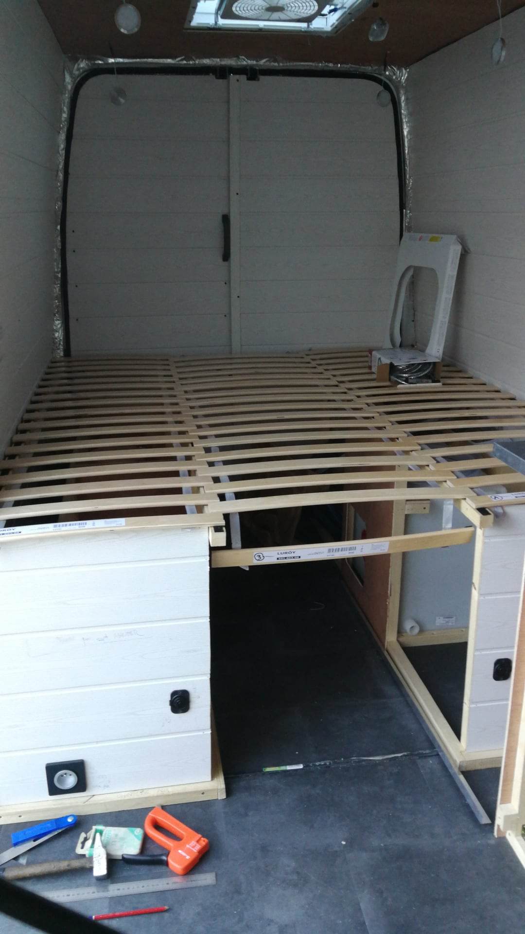 Autant quand le sol/murs/plafond étaient finis en fermant le camion j’ai vu que c’etait beau et que j’aimais bien ce qu’il se passait. Autant là c’est vraiment concret : ca commence à ressembler à un Van aménagé.Ronedi a écrit :Putain c’est cool