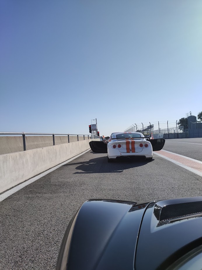 Première session prudente, j'ai heureusement trouvé la piste de Lédenon sur Assetto et j'ai regardé le max de vidéo, je ne suis pas perdu juste très très très impressionné par la descente avant le virage du camion. Le gauche en aveugle est mon principal problème car il n'y a pas de cône (vent). Premier drapeau rouge en fin de session, un Porsche est dans le bac à sable. Je suis en 1'49 avec un optimum plus d'une seconde plus rapide, il y a de la marge ! Les 420 sont en un gros 1'30, le grip est moyen mais le vent aide en ligne droite.
