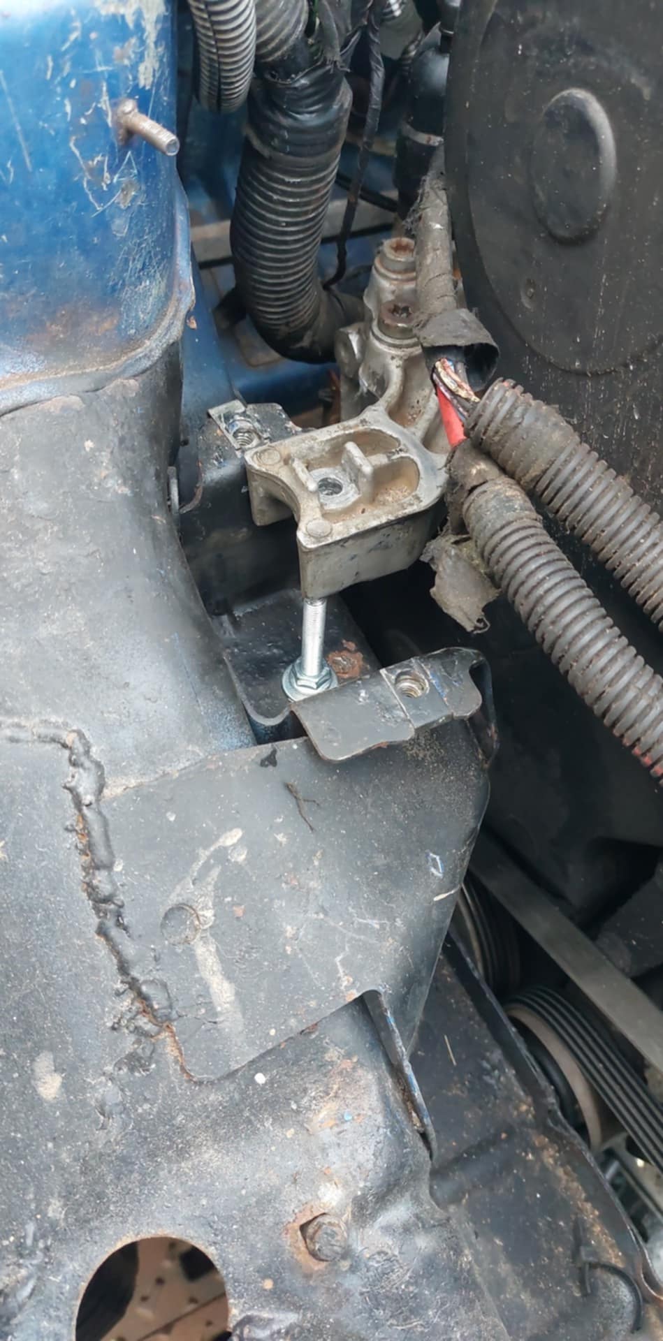 Actuellement il pendouille tenu uniquement par l'anticouple, et la poulie d'alternateur en appui sur le longeron.