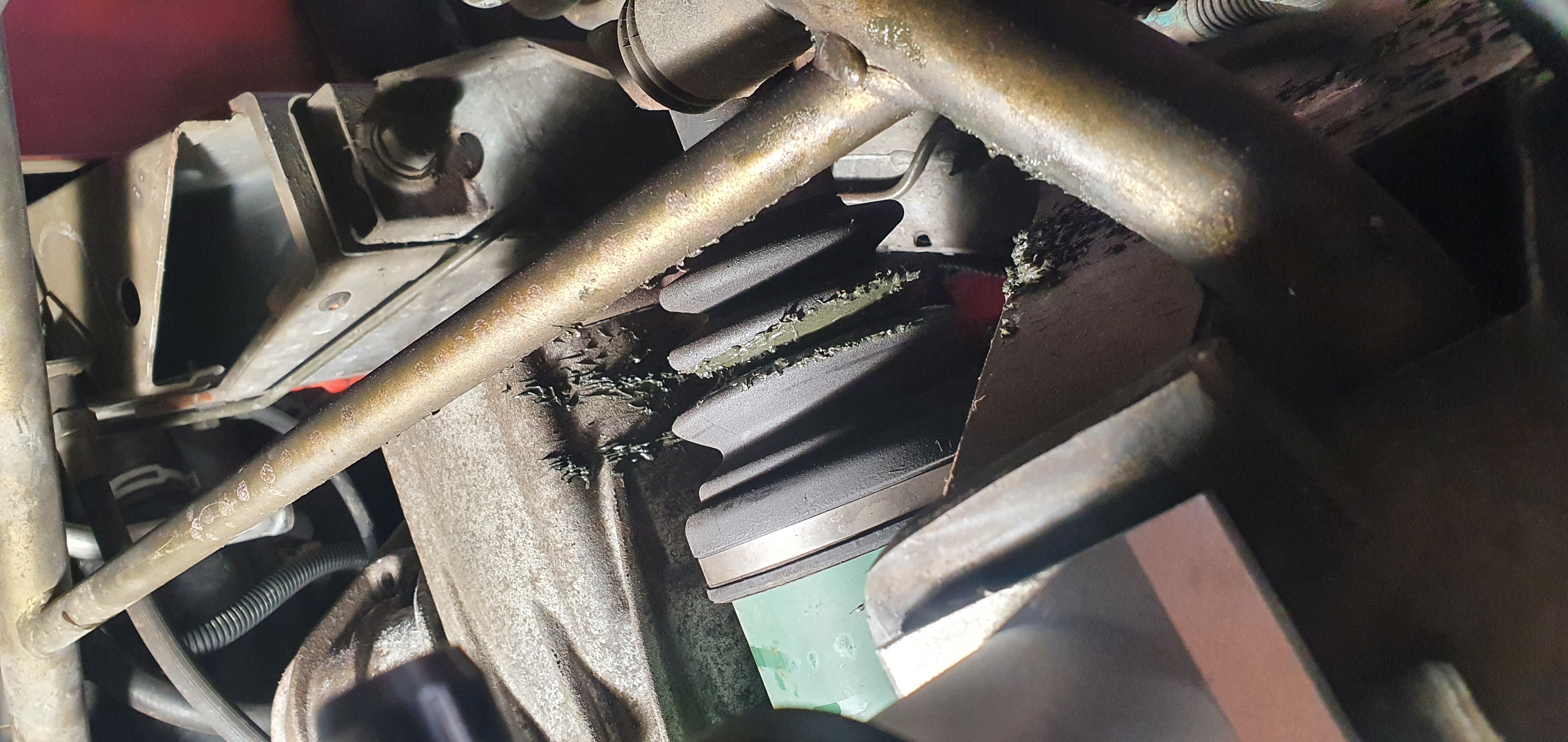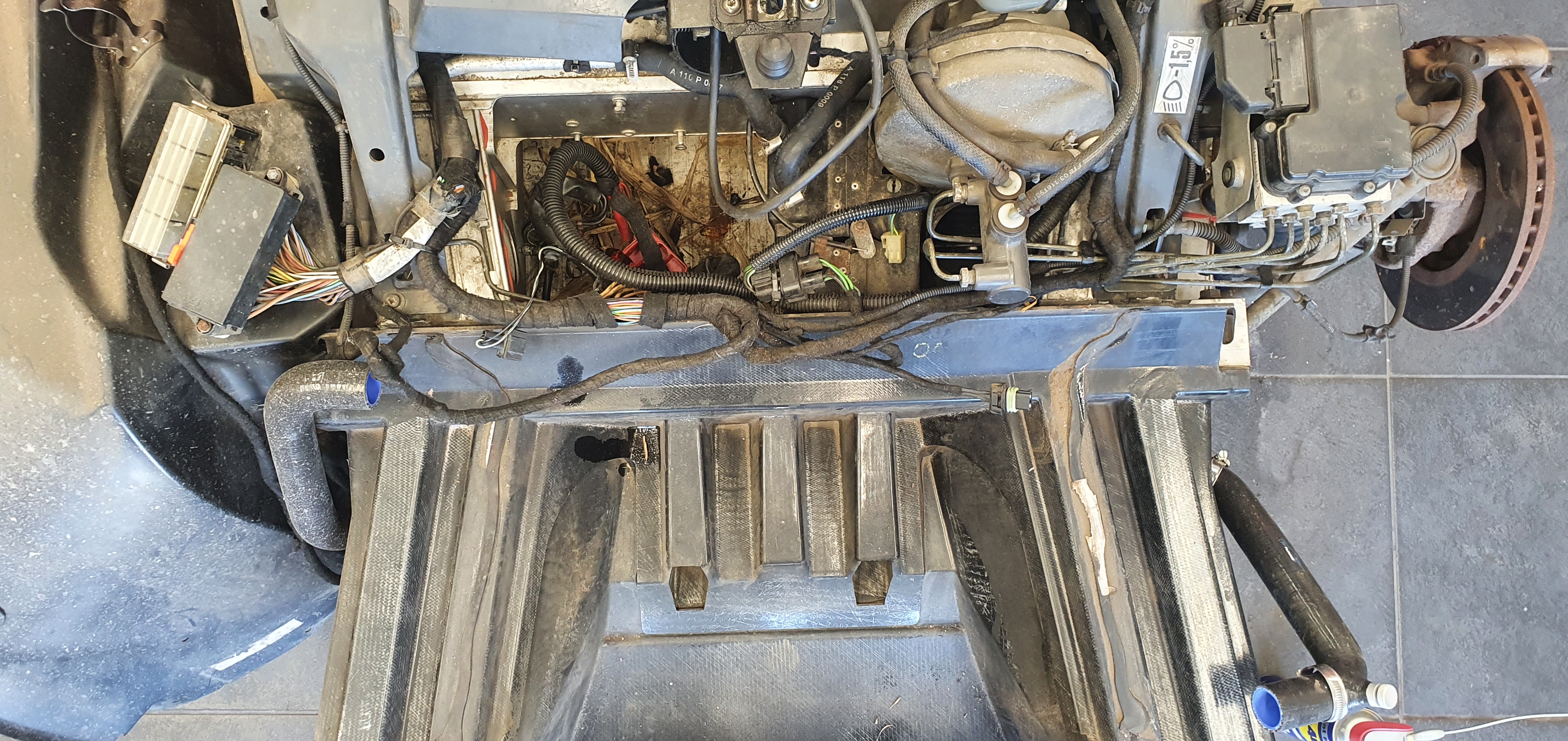 Après avoir démonté le fond plat pour retirer les durites de chauffage coté baie moteur, je découvre des choses.