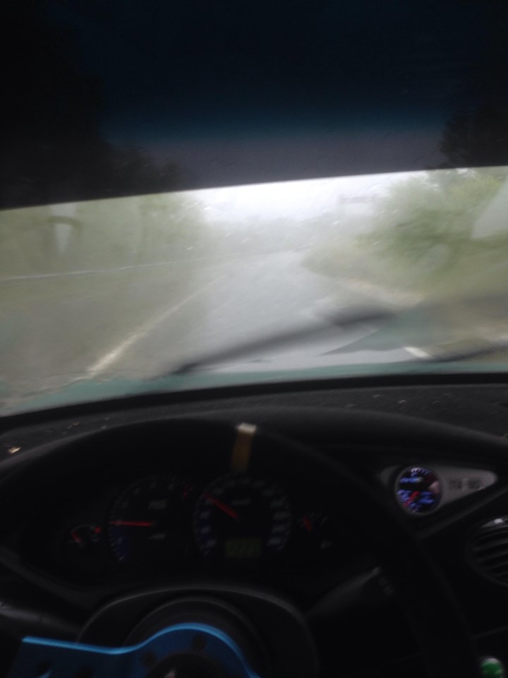 Comme tout le monde en France on prends la flotte du siècle, le filtre à air de la Focus se gorge d'eau, on butte à 60kmh et prends des secousses de l'espace à cause de trous énooooooormes et jamais vu dès qu'on dépasse 1800rpm... La caisse perds allègrement 200cv, il doit en rester à peine 30.