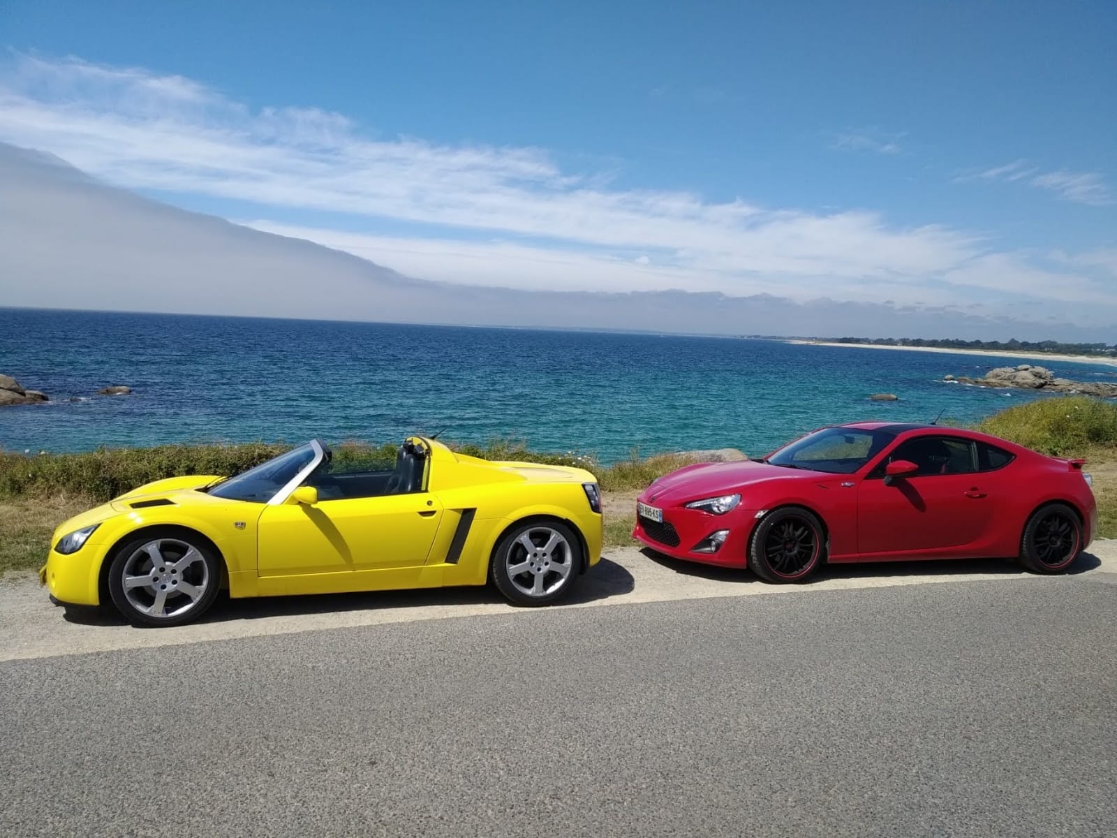 C’est un atmo jaune de 2002. J’ai des amortisseurs Nitron et un échappement sur mesure fait par l’ancien proprio avec un son que j’adore, un peu bruyant pour les longues routes et pour certains circuits (+90db) mais parfait pour apprécier sur les petites routes décapoté.