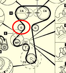 Vous pulvérisez un peu de silicone en spray sur la courroie pendant qu'elle tourne. Si le sifflement s'arrête c'est que c'est la courroie et qu'i faut la changer ce que j'ai fais (même si celle-ci était quasi neuve). On verra si le bruit revient je changerais le galet tendeur. Pas de problème sur la poulie damper (merci les gars pour l'astuce).