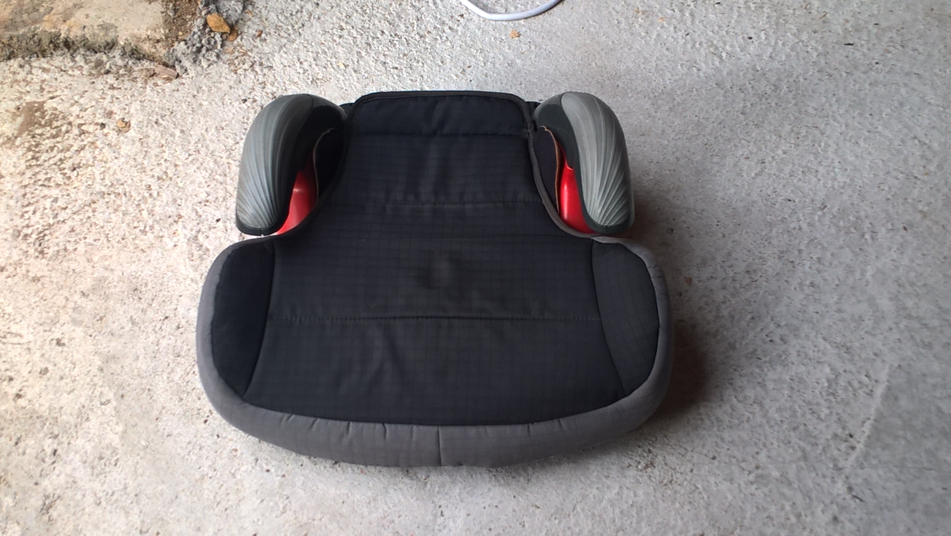 Alors j'ai installé mon fils dans un siège auto gonflable (ne rigolez pas, c'est homologué) que je prends quand on part en vacances à l'étranger, mais avec un tel maintien, au 1er virage (à droite), il s'est retrouvé la tête sur mes genoux