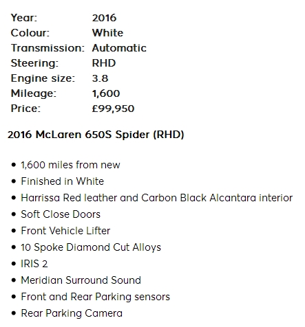 Dans ces tarifs 85/100k£, je me contenterais d'une 540C ou une 570 S/GT, les prix sont hallucinants en Angleterre