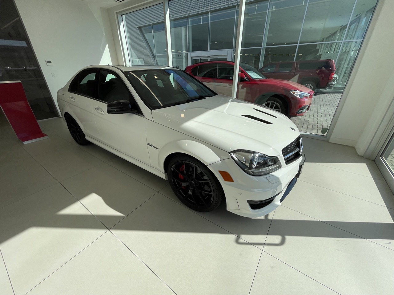 C63 AMG de 2014, berline, Edition 507, full monochrome blanc et noir.
