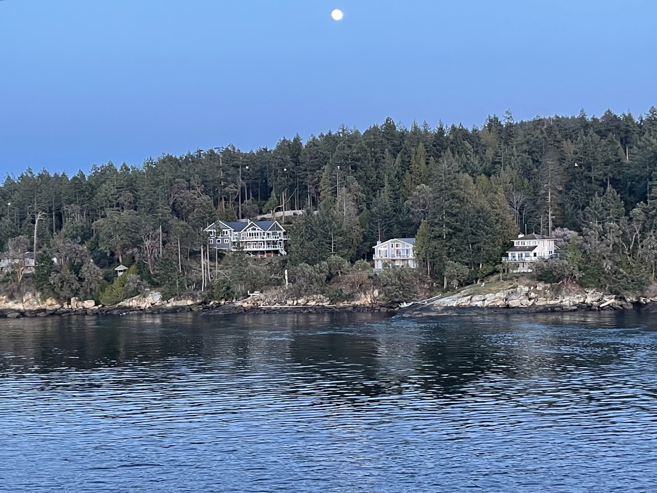 Me v'là sur le ferry vers l'île de Vancouver (où ne se trouve pas la ville de Vancouver, mais bien la ville de Victoria, qui est la capitale mais pas la métropole de Colombie-Britannique, faut suivre). Magnifique, ça me rappelle furieusement l'entrée dans le fjord d'Oslo, montagneux avec de jolies maisons directement sur l'eau
