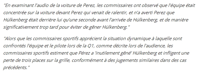 Encore une décision discutable des commissaires de la FIA concernant le déclassement de Perez