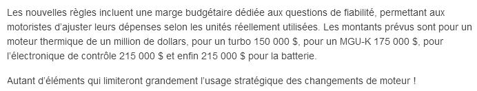 Des chiffres intéressants concernant les éléments de la motorisation des F1 en 2026.