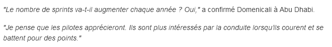 ... et voilà Domenicali qui remet ça avec le nombre de Sprint races