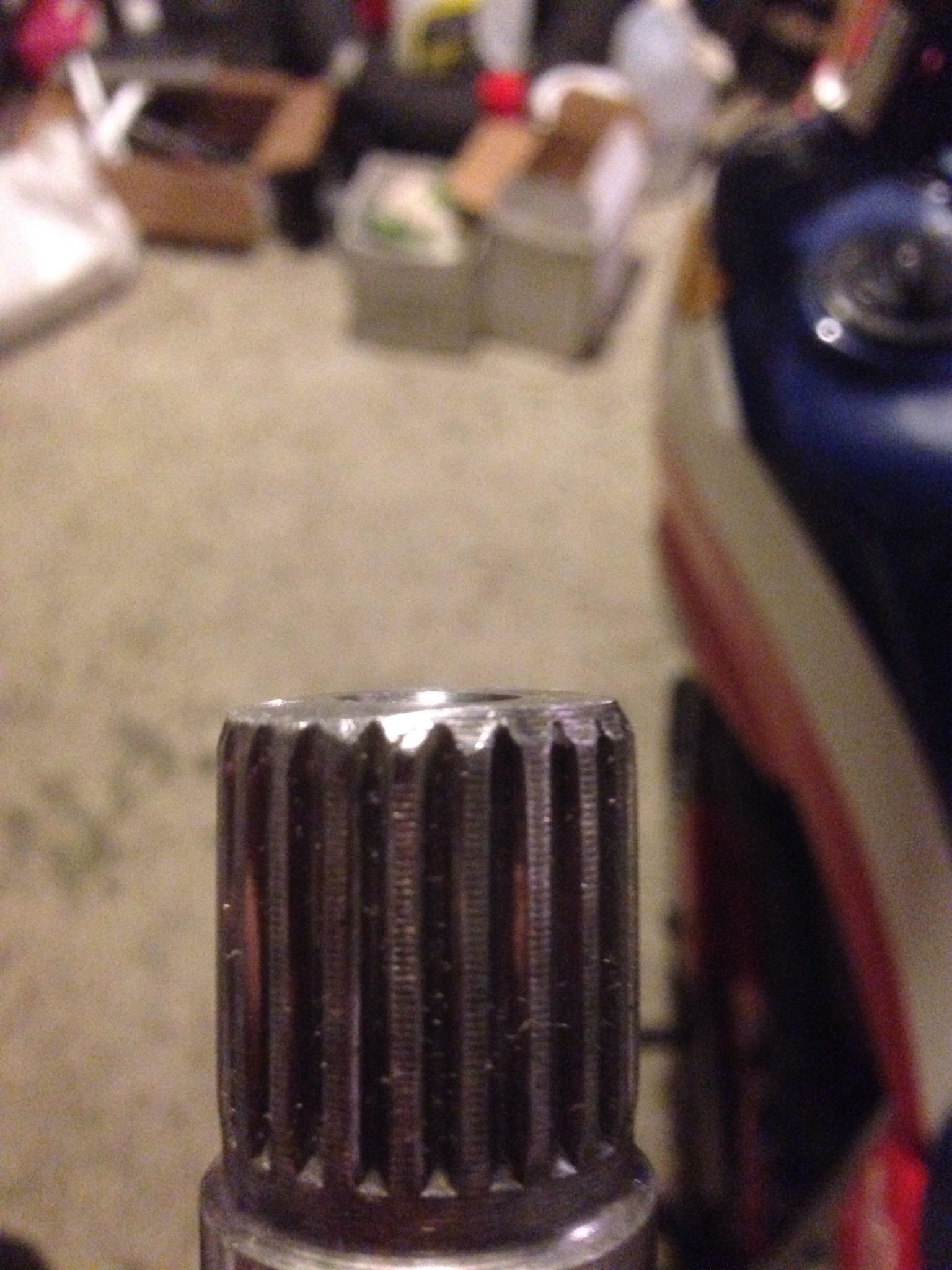 Il ne rentre pas dans le diff, les canelures sont matées. Un mongole s'est probablement dit que ça serait pas mal de taper sur le bout du cardan -côté boite- avec un marteau. Les joies de la pièce de réemploi..Quoi encore là "TUC" ??![]()