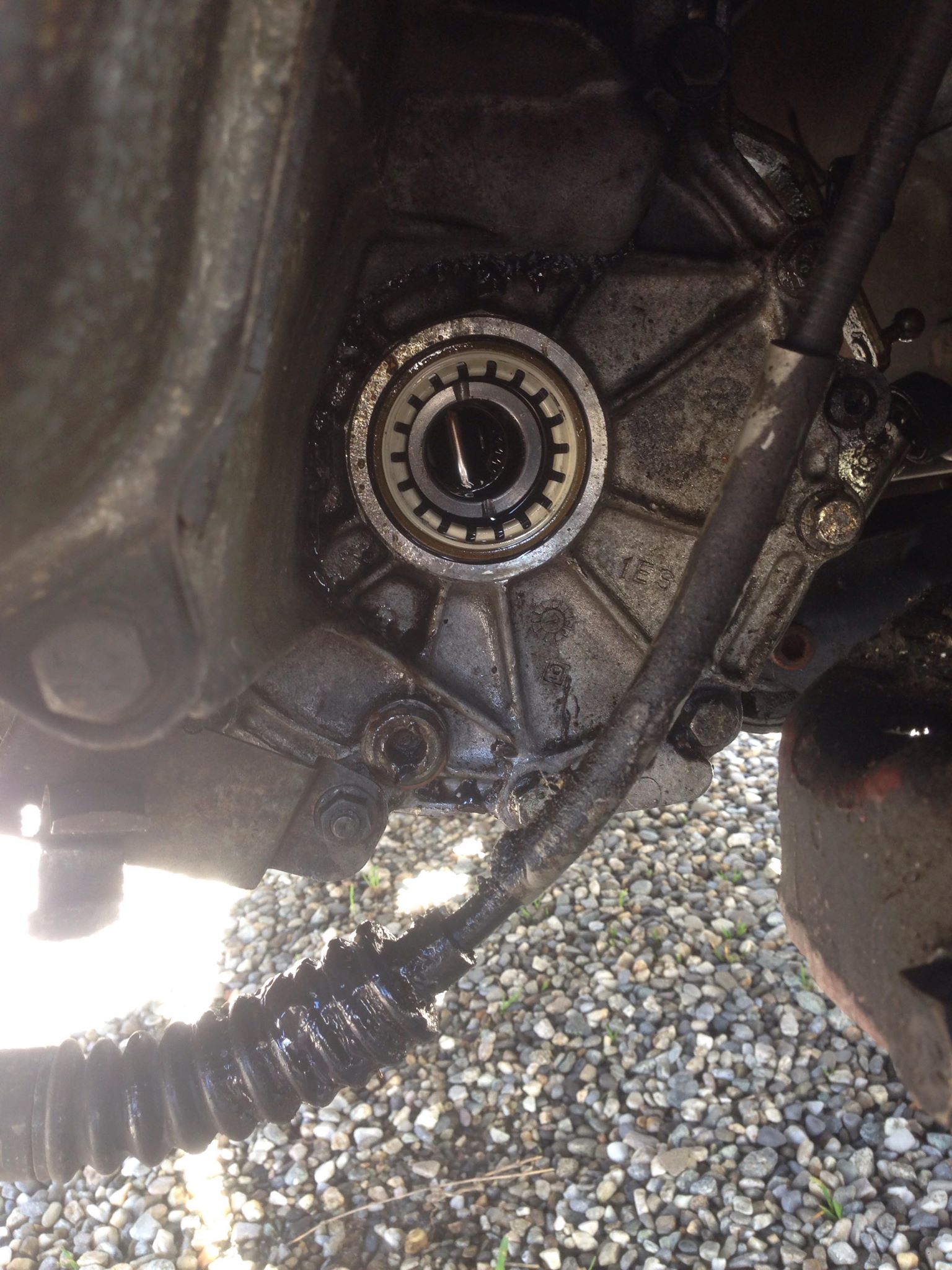 Le cardan a donc une tige trop longue, qui vient buter dans l'axe des satellites à l'interieur ( "TOC" ) et dépasse du différentiel à l'exterieur (Fuite)