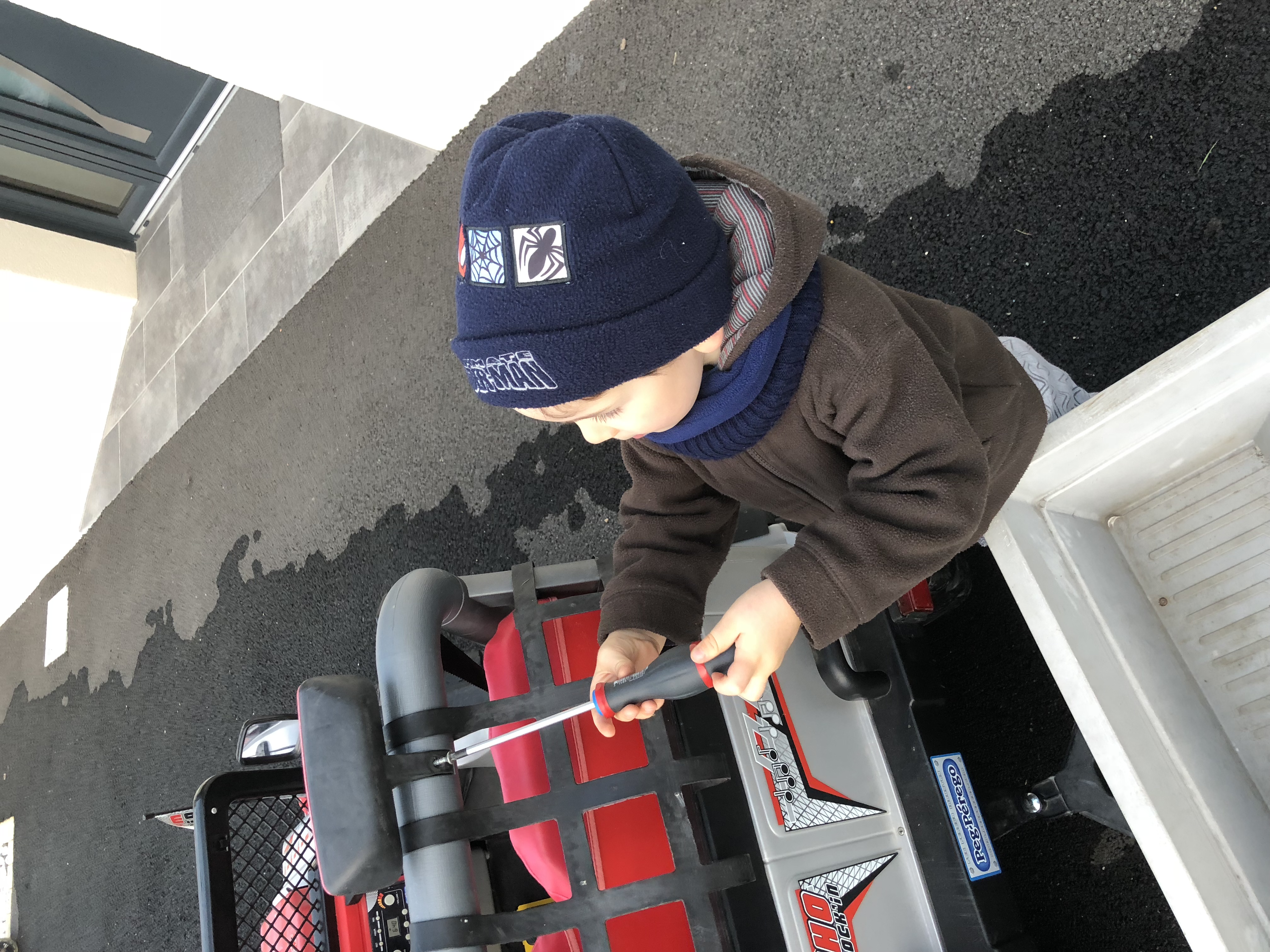 C'est couillon j'ai pas immortalisé le démontage des roues, j'étais trop occupé à tenir le truc pour pas que le petit se le prenne sur la tronche