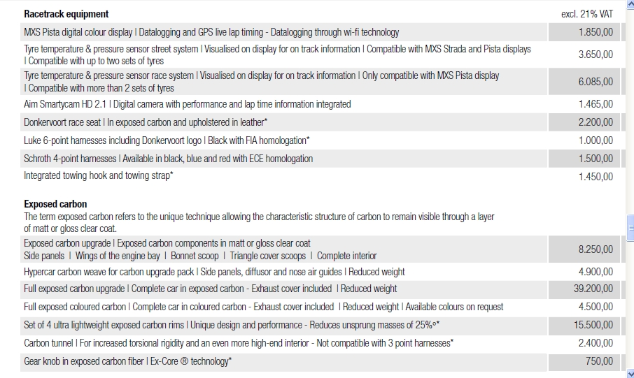 Donkervoort propose à sa clientèle quatre niveaux d’exposition de la fibre de carbone : du subtil « exposed-carbon upgrade » à la véritable œuvre d’art « full exposed carbon ».