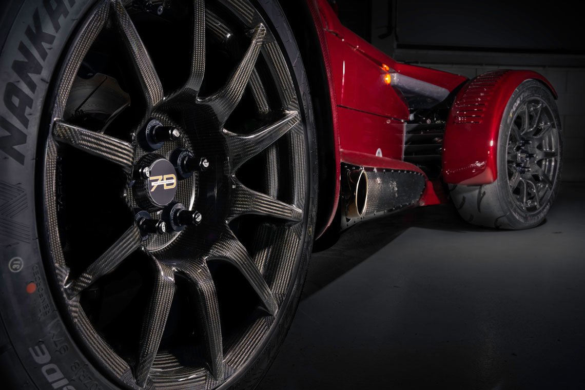 Full-Exposed Coloured Carbon : Donkervoort livre la voiture entièrement en carbone teinté, y compris la protection de l’échappement latéral.