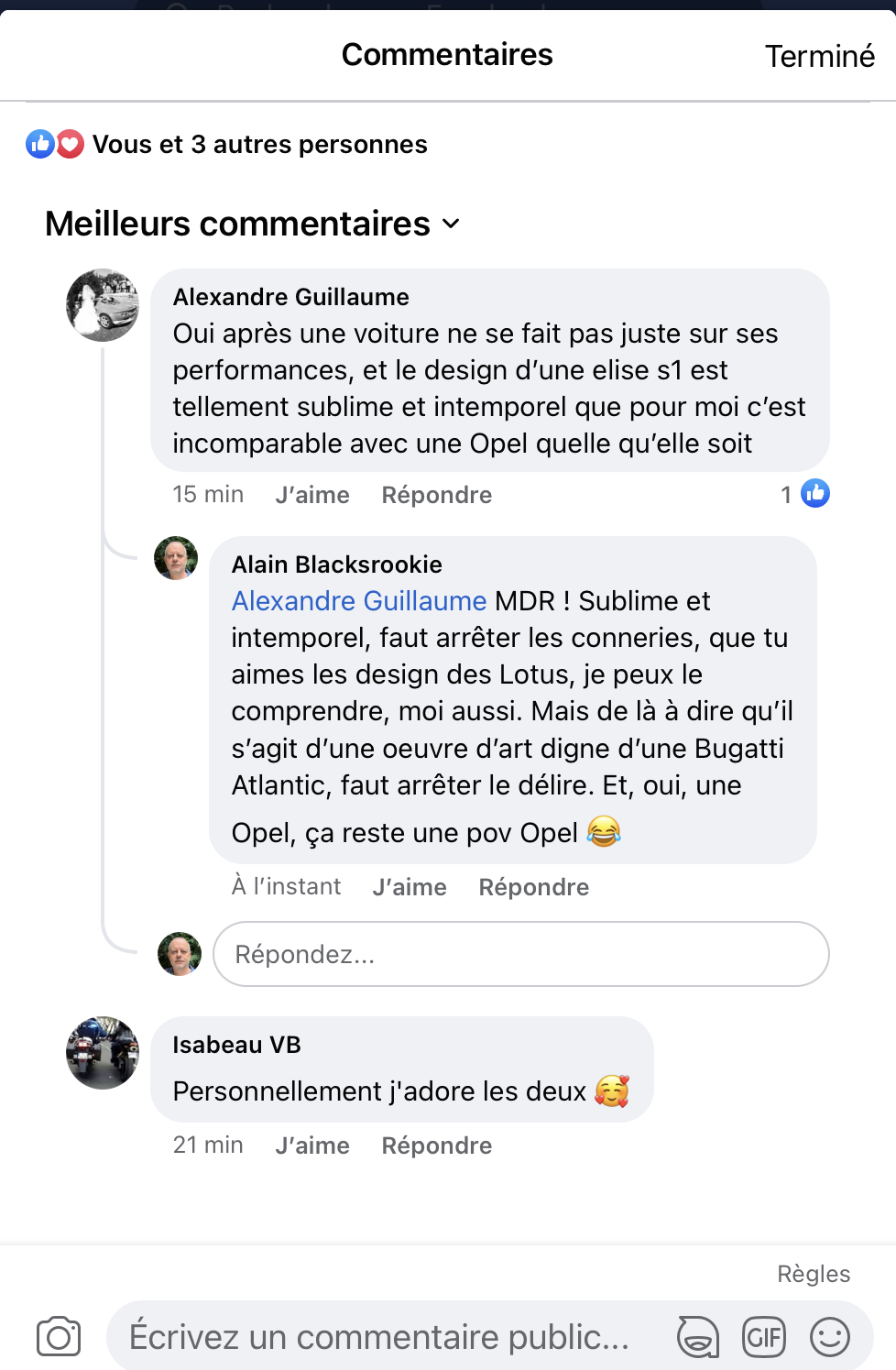 En tout cas, après la publication FB sur Club Lotus, y a des commentaires