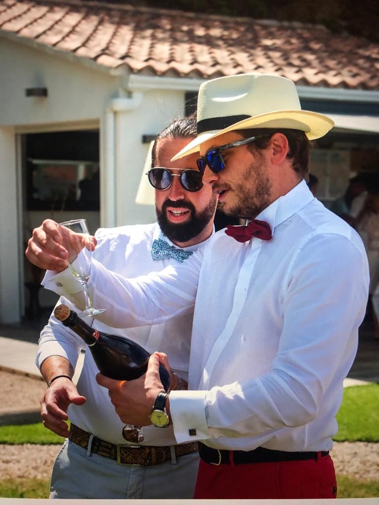 Sans oublier de transmettre son savoir, Sabrer une bouteille avec une coupe :D (note cette photo était fin Mai, avant l'accident...)