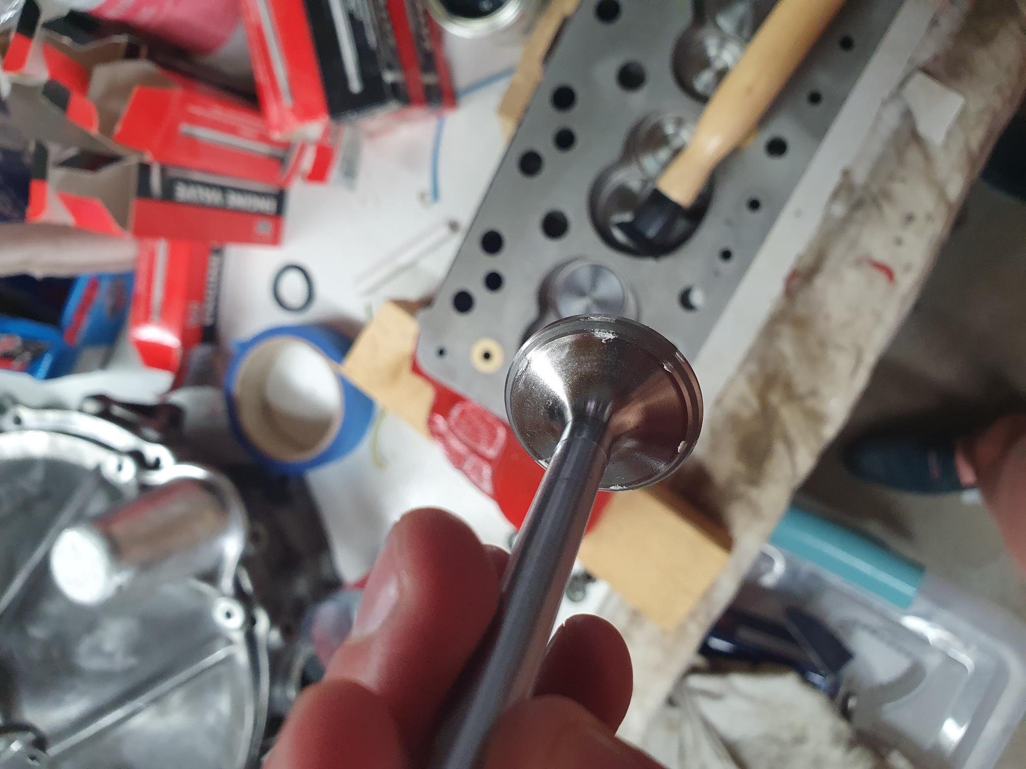 Allez hier soir je me suis chauffé et j'ai lancé le rodage de soupapes. Rien de bien compliqué ici mais de loin le plus pénible pour moi, un peu de pâte à roder, un peu d'huile et pas mal de patience.
