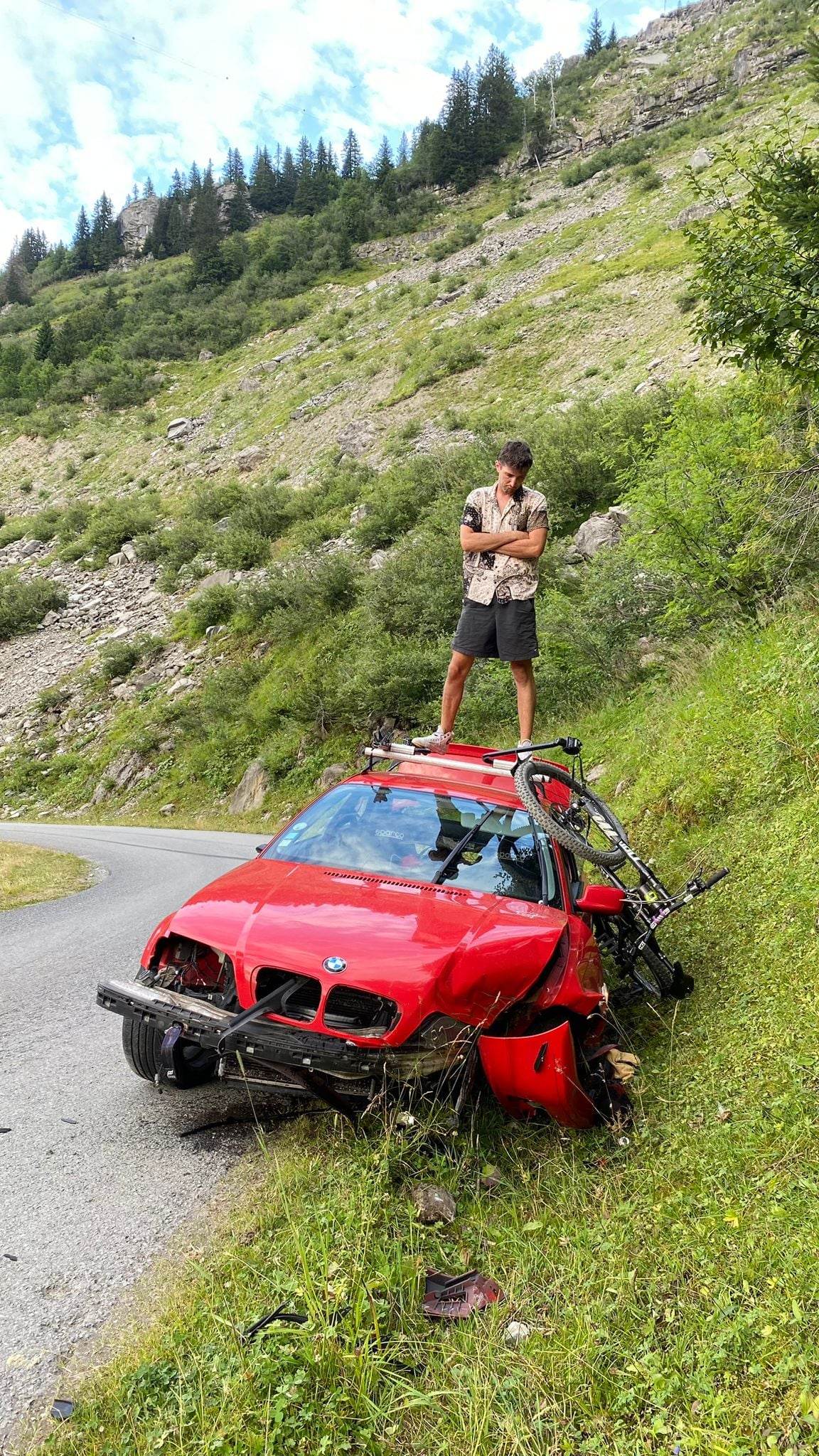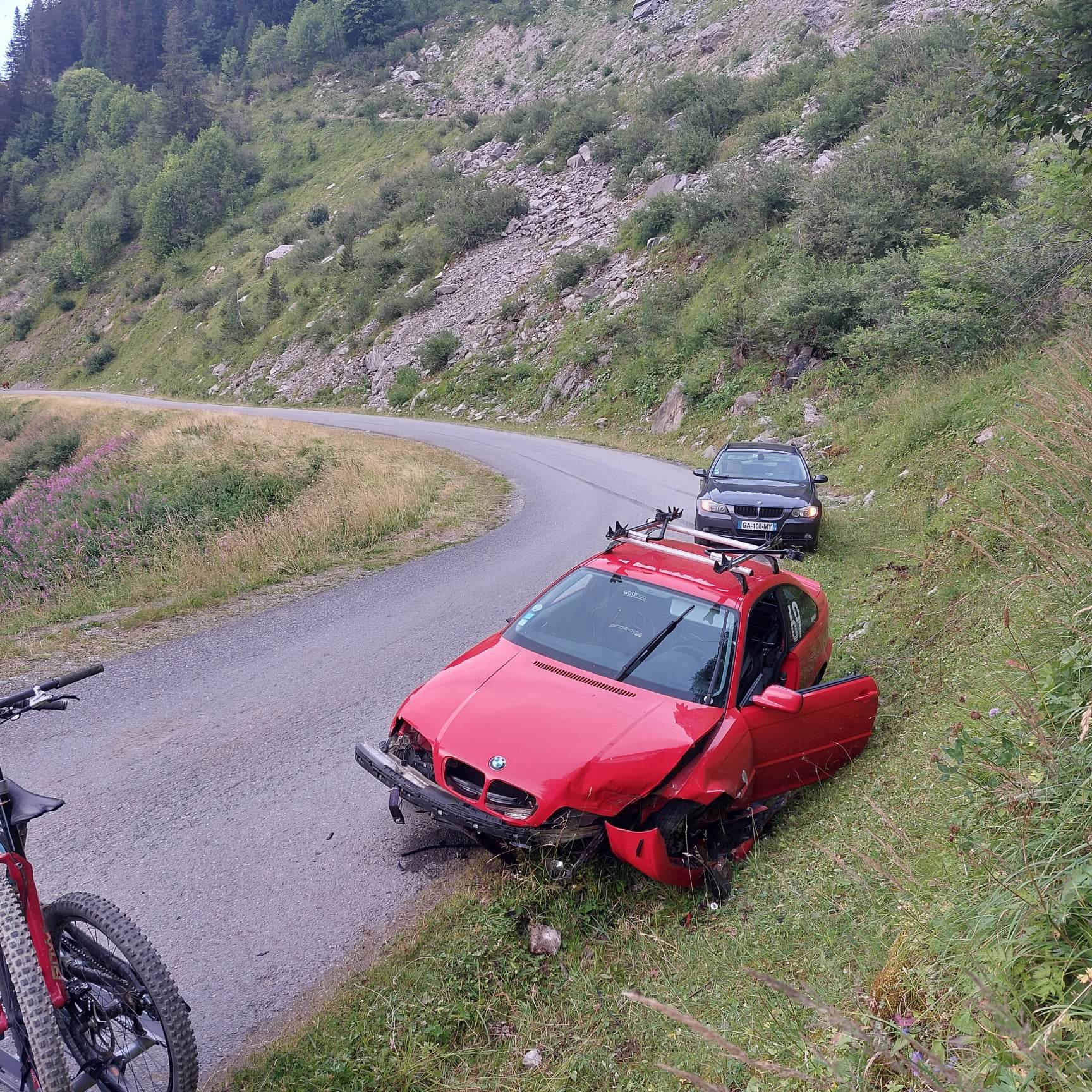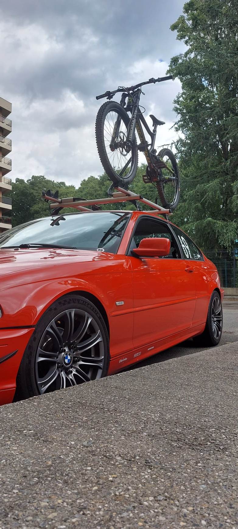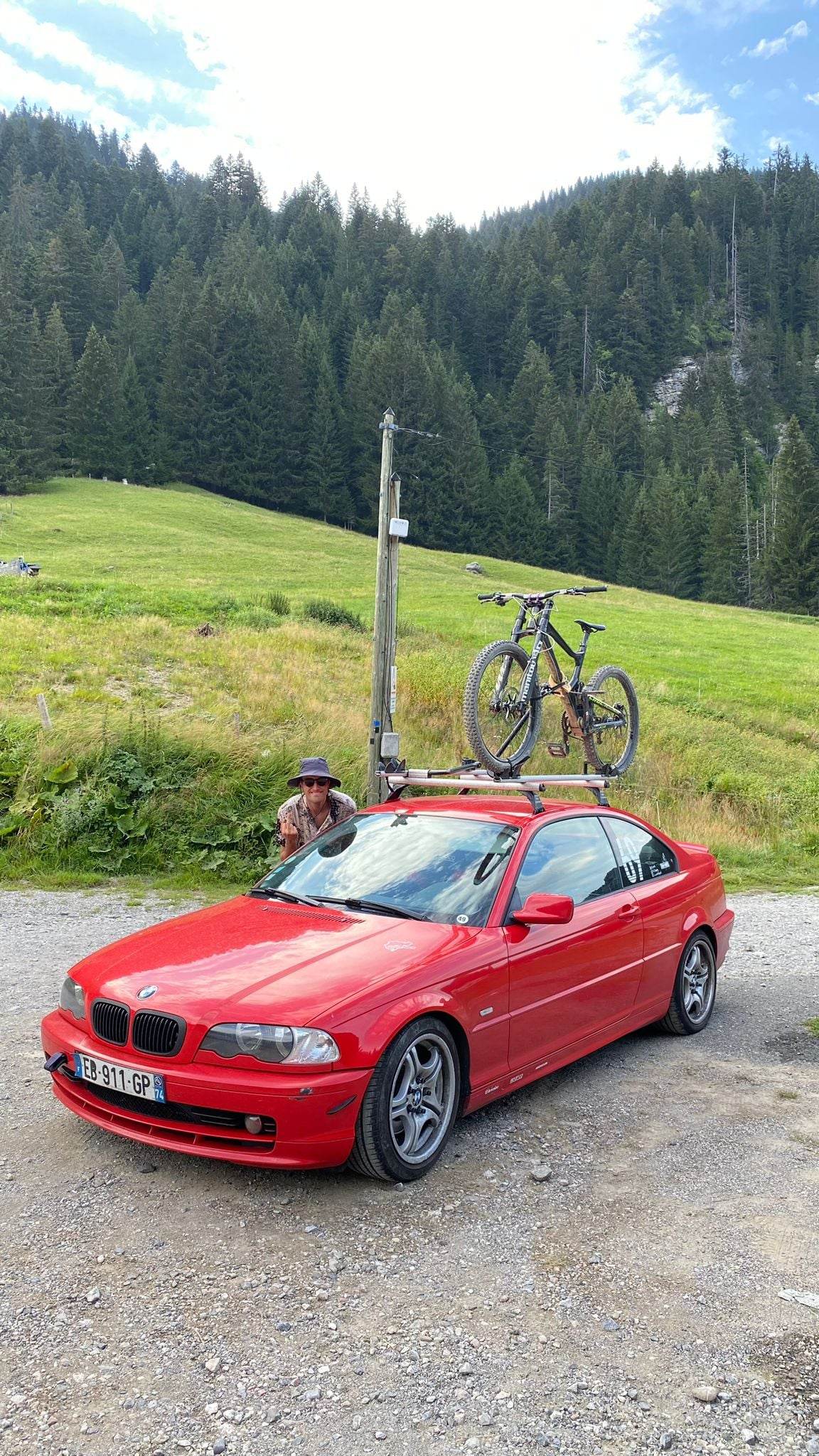 4) Mi Aout, ca part faire du VTT avec mon pote 3.14. Quelques semaines avant je me fends de 2 barres de toit et un Bikerack. J’installe tout et teste dans un col local, m’attendant à me faire doubler par mon vélo sur un freinage de trappeur : ca tient à 110 dans les virages, ça tient les freinages RC6 appuyés.