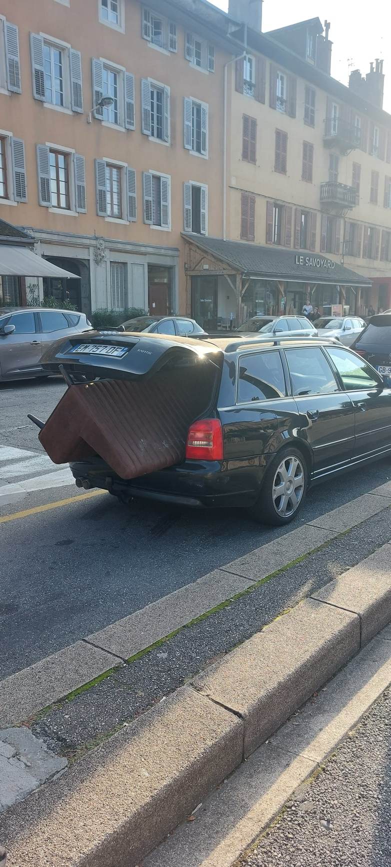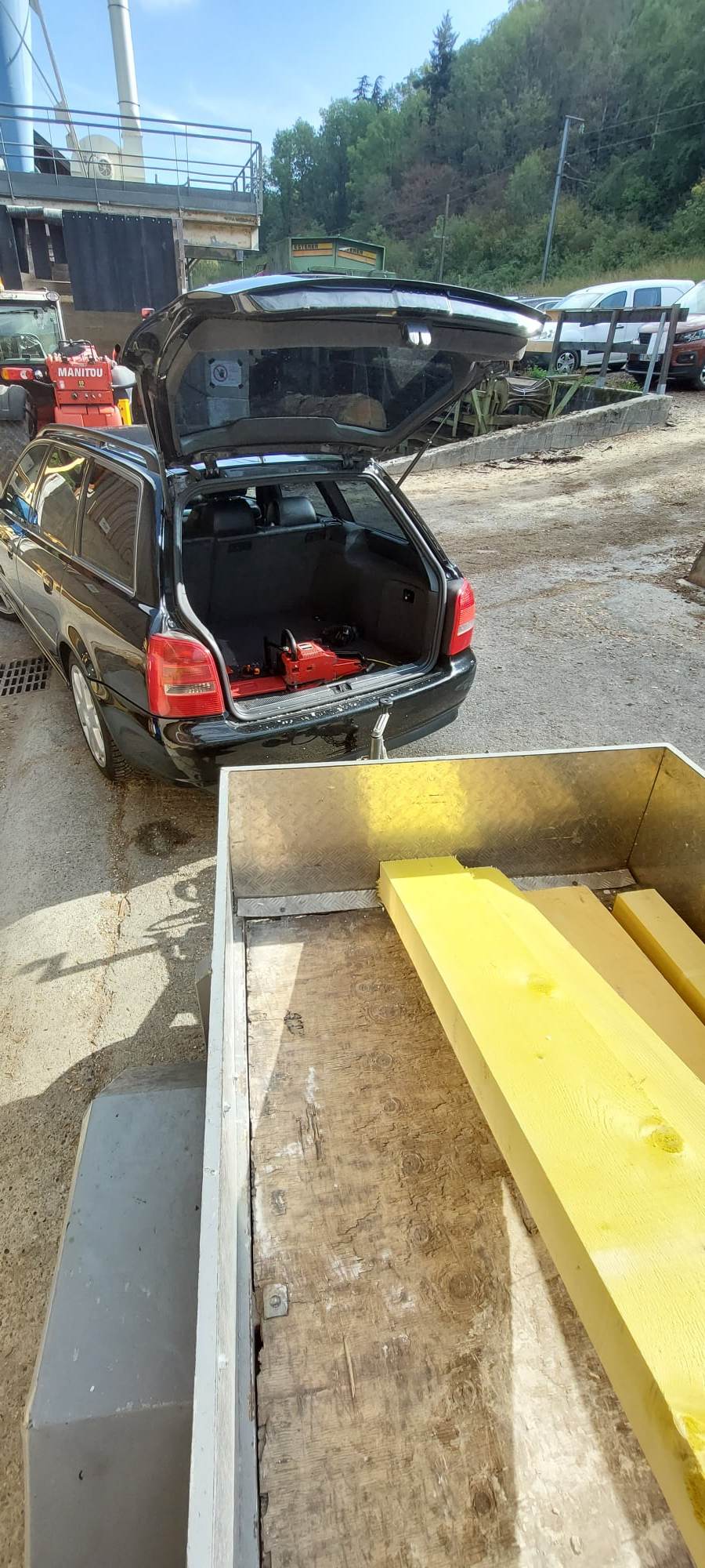 Anecdote : toujours couper une poutre avec le hayon ouvert et toute la sciure de tronconneuse qui part dans le coffre !