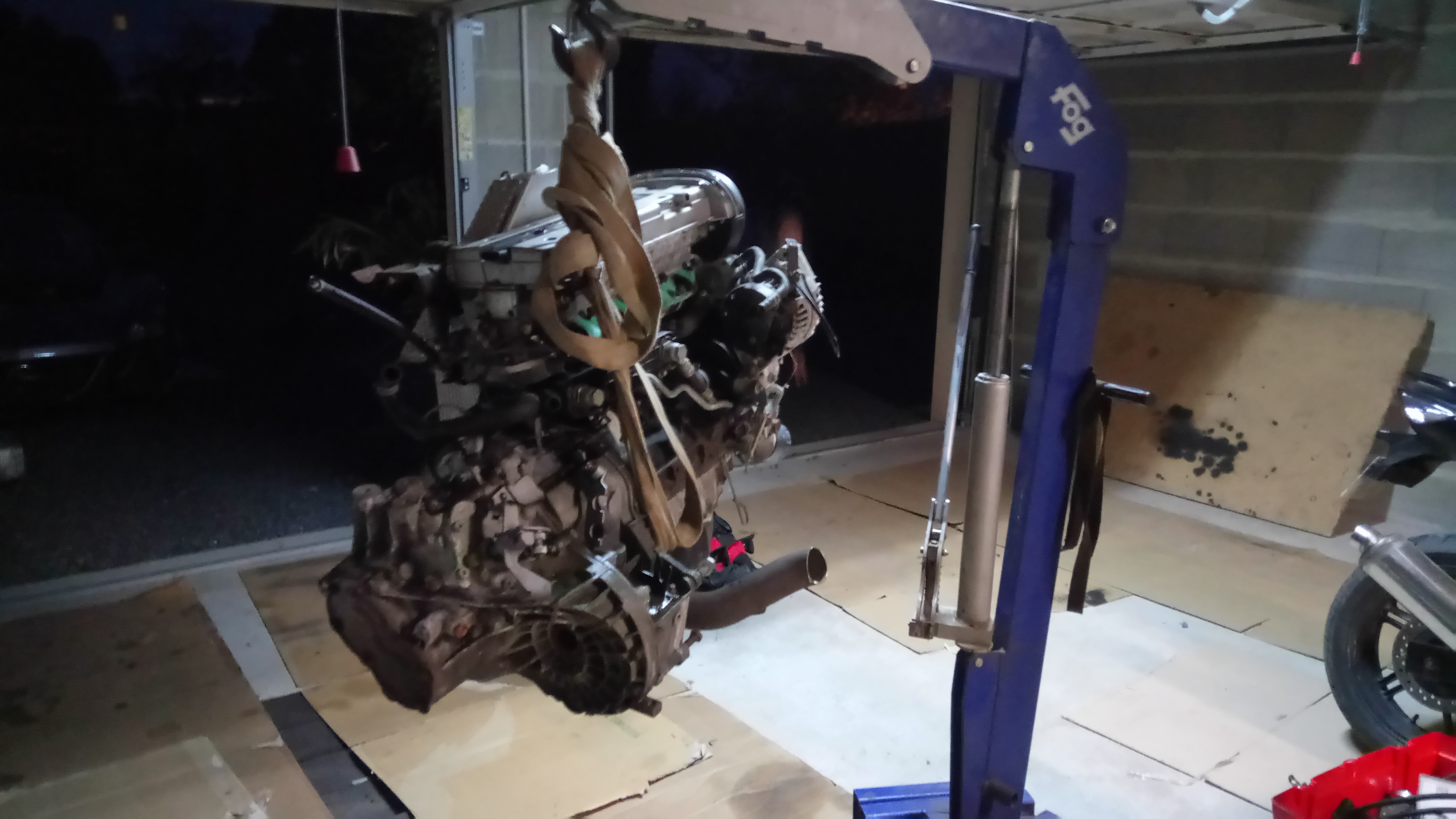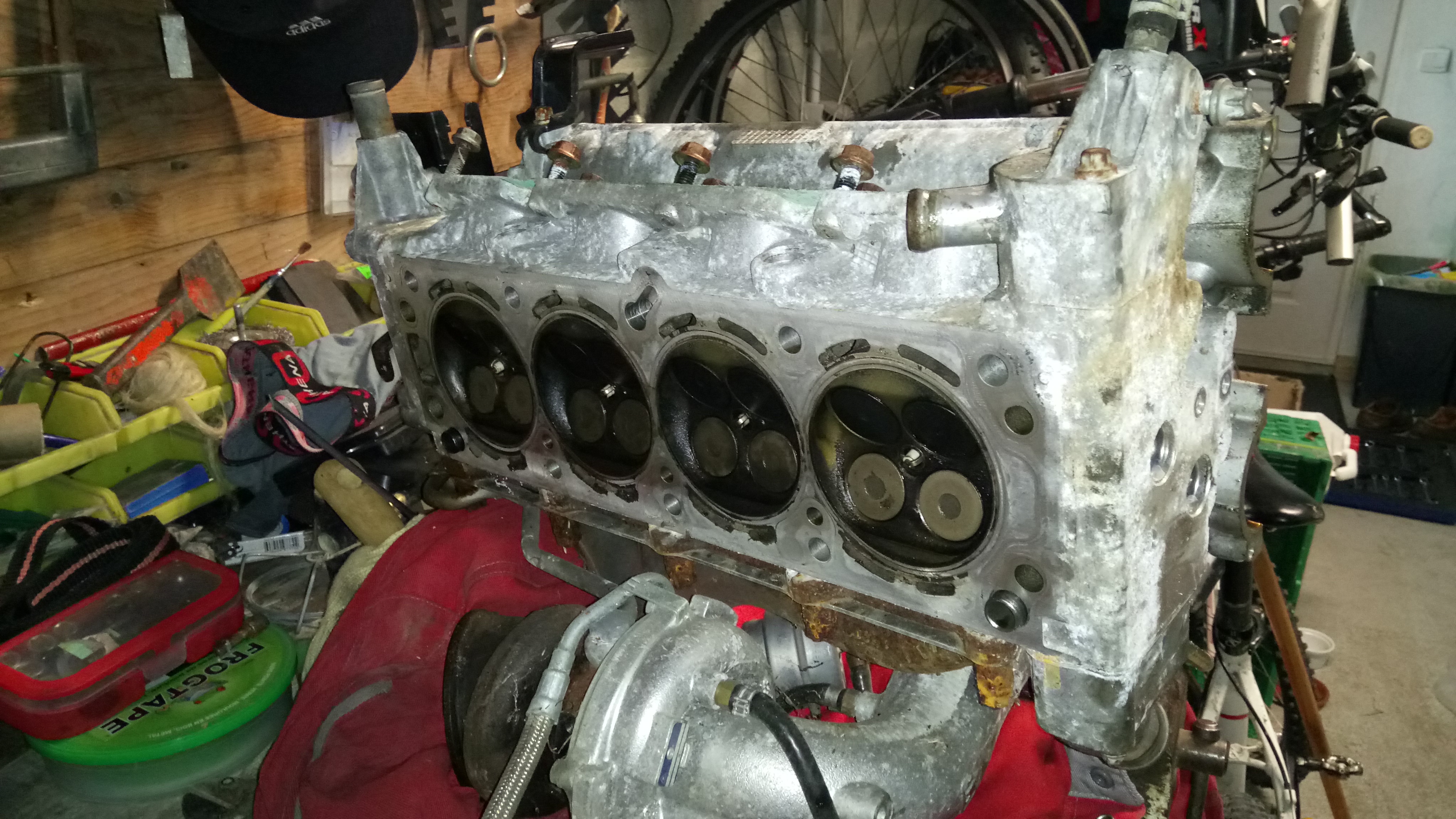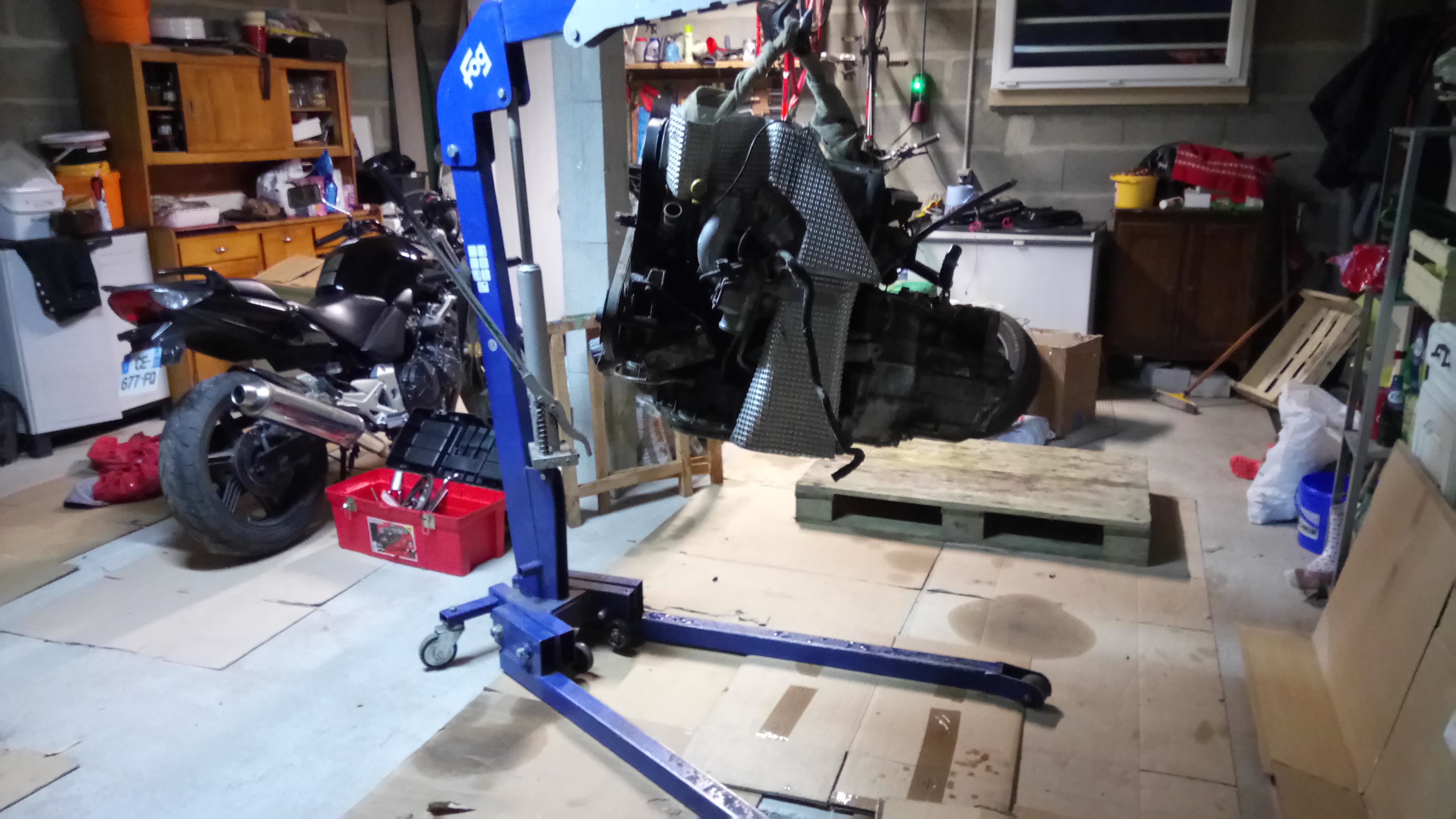 Après avoir remis un plein de wd40 dans les cylindres mis de l'huile dans le haut moteur ainsi que faire tourner le moteur a vide pour monter la préssion d'huile J'ai mis de l'essence dans l'admission car pompe à essence gripper et voila le réveille .