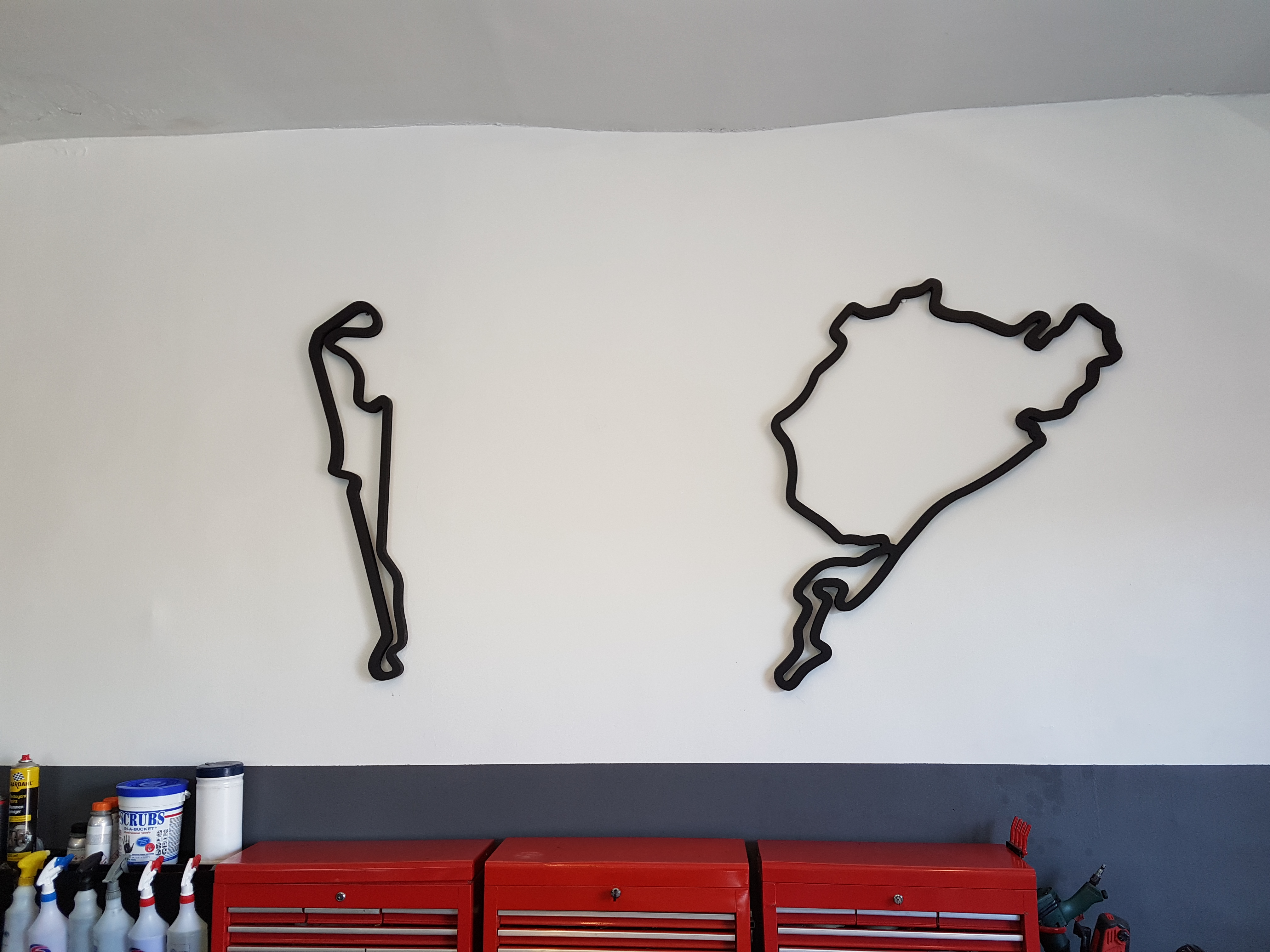 Un exemple de Nurburgring en 1mx1m environ que j'ai pris pour moi mais tout type de tracé est normalement réalisable ainsi que d'autres couleurs, du carbone, alu brossé etc.
